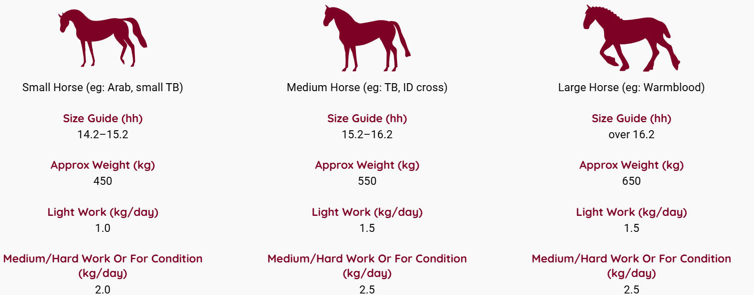 - A blend of alfalfa and rapeseed oil providing 12.5MJ/kg of Digestible Energy from fibre and oil – a comparable energy level to a competition or conditioning mix or cube, but with 10x less starch